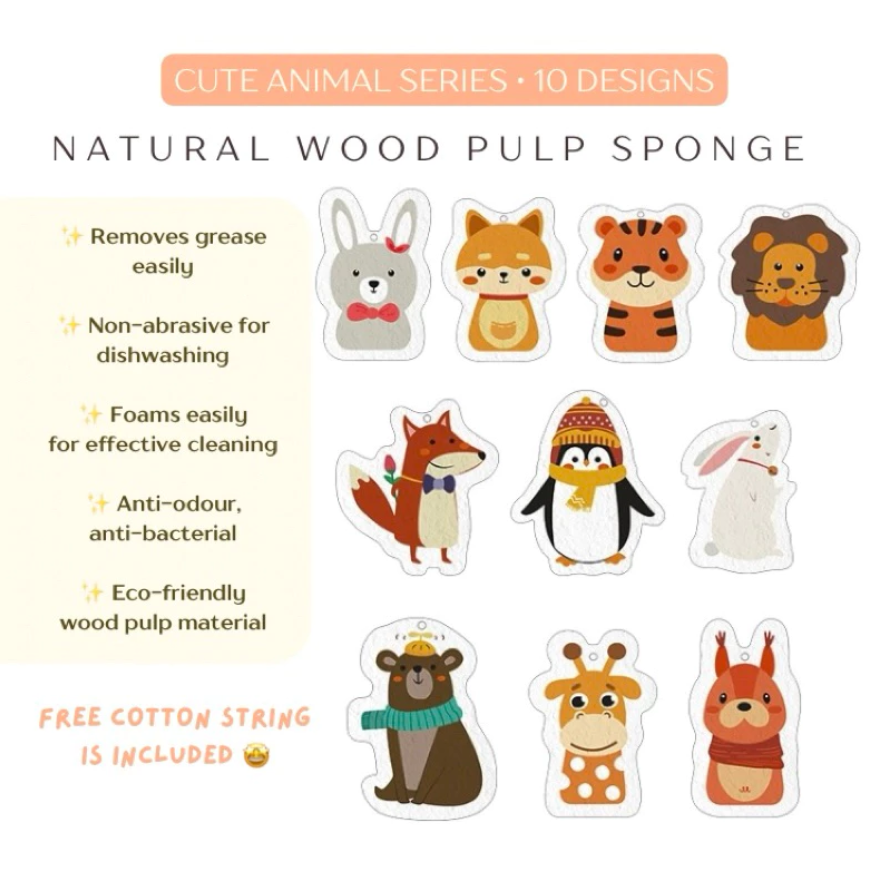 Add a dose of playfulness to mundane dishwashing chores with these adorable animal shaped wood pulp sponges!